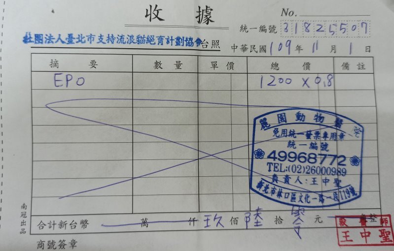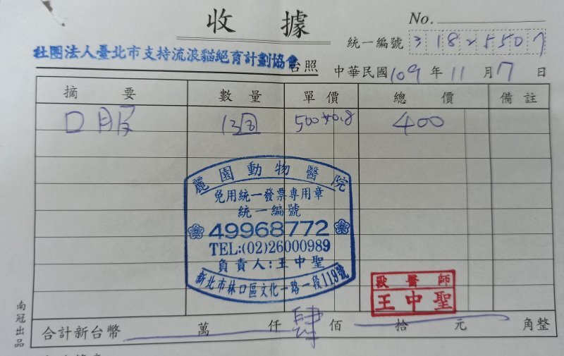 戶名:社團法人臺北市支持流浪貓絕育計劃協會