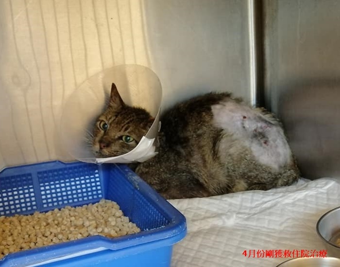 虎生剛被救援時模樣非常可憐,身上可見多處傷口、髒亂的毛髮、嘴巴邊還流著口水、體型很瘦,讓人看了好心疼,可能也受過人類的欺凌,虎生剛到安養之家的時候戒心挺重,看到照護員拿了罐罐,他眼睛都亮了,一臉憨厚可愛,但他又不敢靠近,等照護員走開一點他就迫不及待的大口吃光罐罐,幸好有協會的救援,虎生現在不用擔心沒有飯吃、不用害怕,這段時間在安養之家的日子受到極好的照顧及充足食物,讓虎生的毛髮變濃密、體重迅速增加,雖然還是對人有些戒心、看診時仍得用大毛巾包緊緊,但從虎生單純可愛的眼神看來,相信有天會完全卸下心防,變成親人撒嬌的可愛寶貝。
