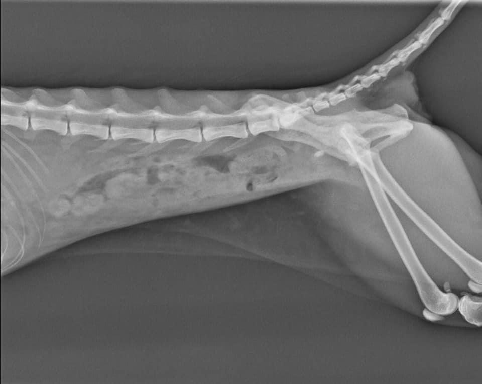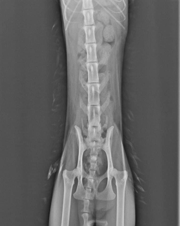 慎重起見。先幫阿咪做個X光檢查。果不其然。找到問題點了。