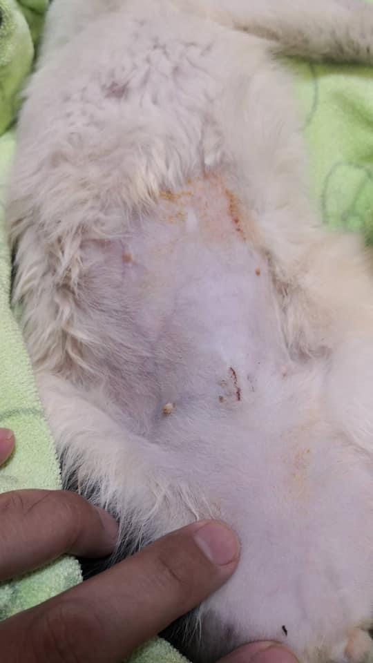 所以先住院觀察幾天再進行手術動物近況說明: 阿咪在手術後在助理姊姊的照顧之下。傷口癒合的很好。食慾進步了很多。體重增加了0.6公斤(灑花~)