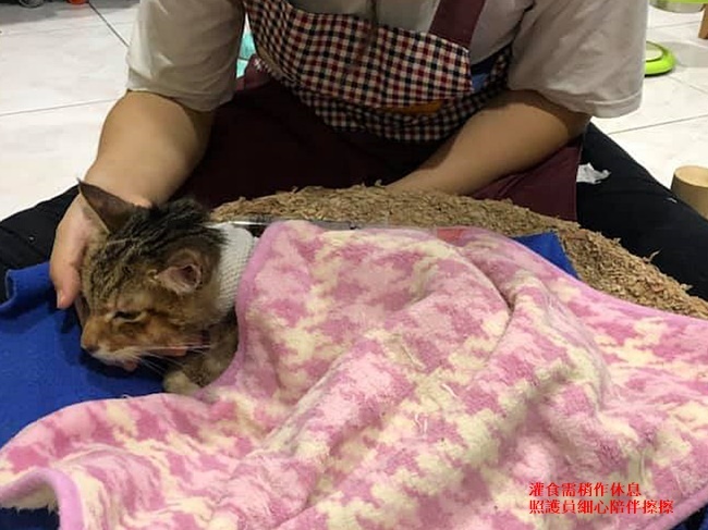1. 美士成貓飼料粉 10g + 水20g:每天兩餐,早晚管灌,水前沖3後沖7