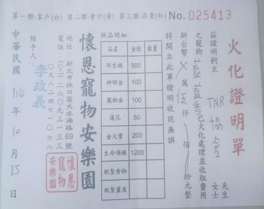 收據可抵稅請將地址mail至cashier@tnrtw.org0912940006763