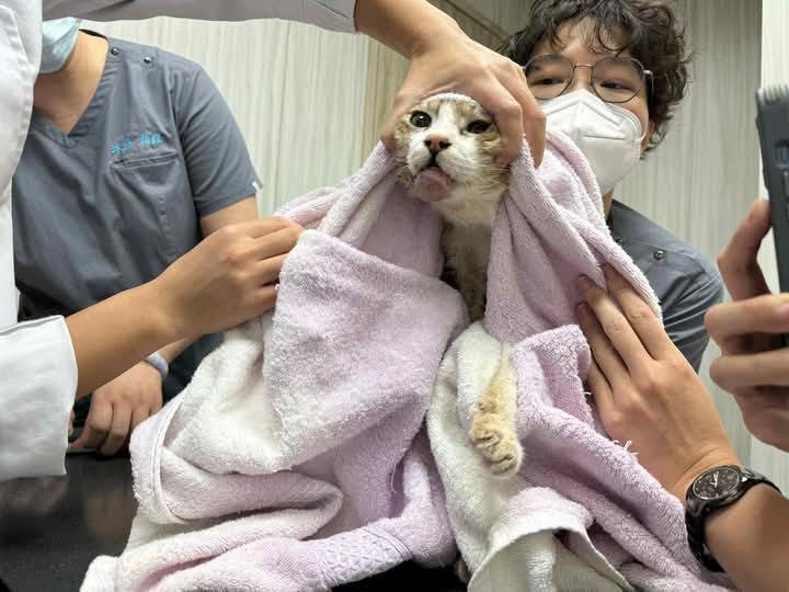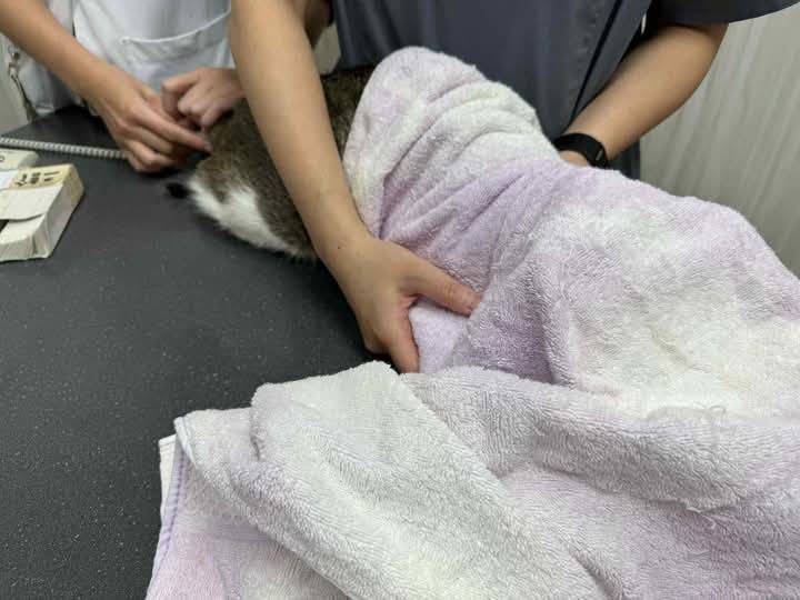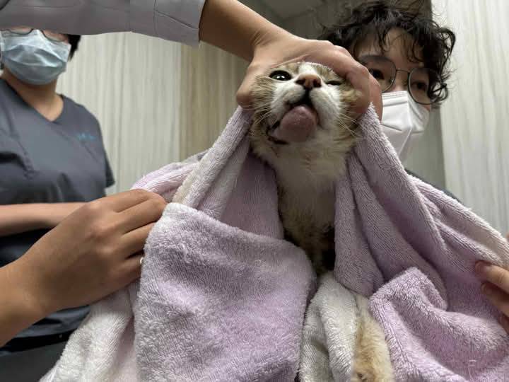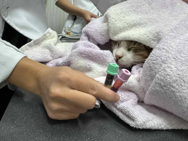 貓咪病情複雜,醫生們懷疑是腫瘤問題,於是7月初寫信向協會尋求幫助,目前已於合作醫院長青進行各項檢測,並於楊動物醫院住院照護中。經檢測,無腫瘤活躍細胞,細菌培養亦無細菌感染,已再進一步另做細菌切片染色檢測。第一階段報告結果,醫師認為,下巴跟頸部後側莫名腫大的原因,跟貓愛滋發病有關。目前投以抗生素、造血針治療中。