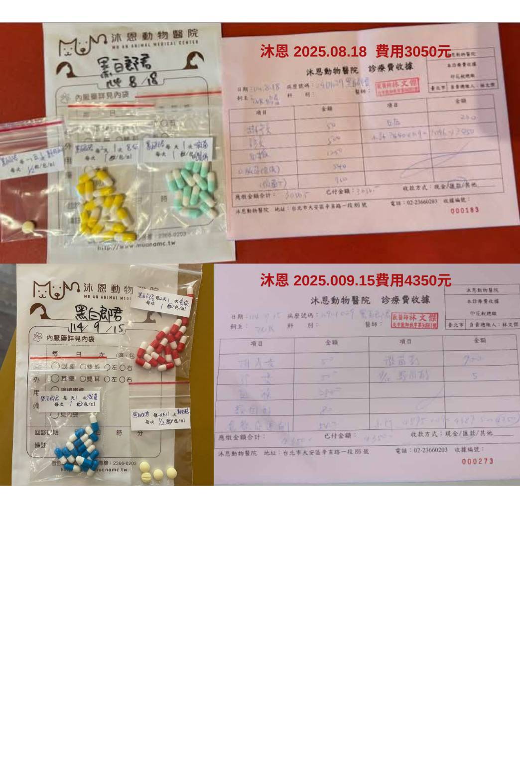 本筆醫助為黑白郎君於2025年8月18日-9月12日至沐恩醫院回診的費用,包含血檢、超音波及尿檢及用藥。