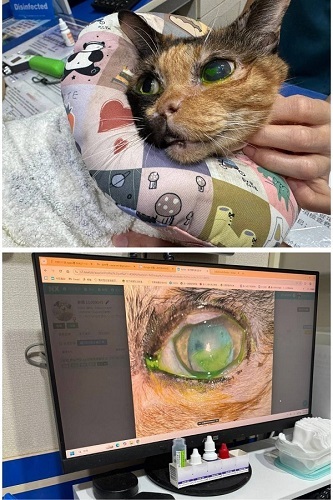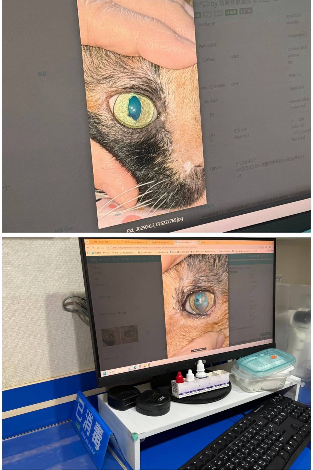 且因為眼球已經被抓傷面積還很大,若持續惡化,有失明的危險。