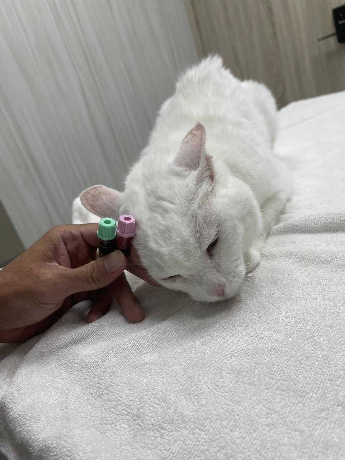主題: 治療腎功能衰退的小白及9月處方飼料添購 申請者姓名: TNR協會 花色: 申請日期: 2025-10-02 13:30:59 申請者部落格: 申請者臉書網址: 所在縣市/合作醫院: 台北市/沐恩動物醫院 治療費用: 13800元 需求人數: 46人 已結案 (2025-12-11 16:27:35) 報名人員: Claire Huang(已付款)、Michelle.Tsai x3(已付款)、333(已付款)、侯兄、侯兄 x2(已付款)、Leo哥哥、紀香香 x10(已付款)、Wen x20(已付款)、Wen x7(已付款)、Leo哥哥(已付款)、羅潘(已付款)、 候補人員: 動物病情說明: 小白原本生活在苗栗安養之家的山下,平時有好心人家餵養,2021年間,已經13歲的小白因身體逐漸消瘦且毛髮雜亂,所以在2021年3月間,協會工作人員將其帶至台北沐恩醫院檢查,當天體重只有2.9kg,嚴重脫水、有許多跳蚤,嚴重口炎、已潰爛發出異味、毛髮糾結雜亂,血檢結果,愛滋白血陰性、發炎指數很高還有貧血,當天辦理住院,做體內外驅蟲、打皮下輸液及用藥,並送驗血巴東檢驗以確定貧血原因,住院治療至食慾狀況較為穩定後接出院住進台北安養之家,但仍需持續回診,為治療嚴重的口炎,在內科狀況較為穩定後進行牙周手術,術後還是需要持續回診治療口炎,經過數月,小白的健康逐漸有進步,皮膚毛髮也變好、體重持續增加,雖仍須回診用藥,但已經可以延長回診時間及可少用藥。