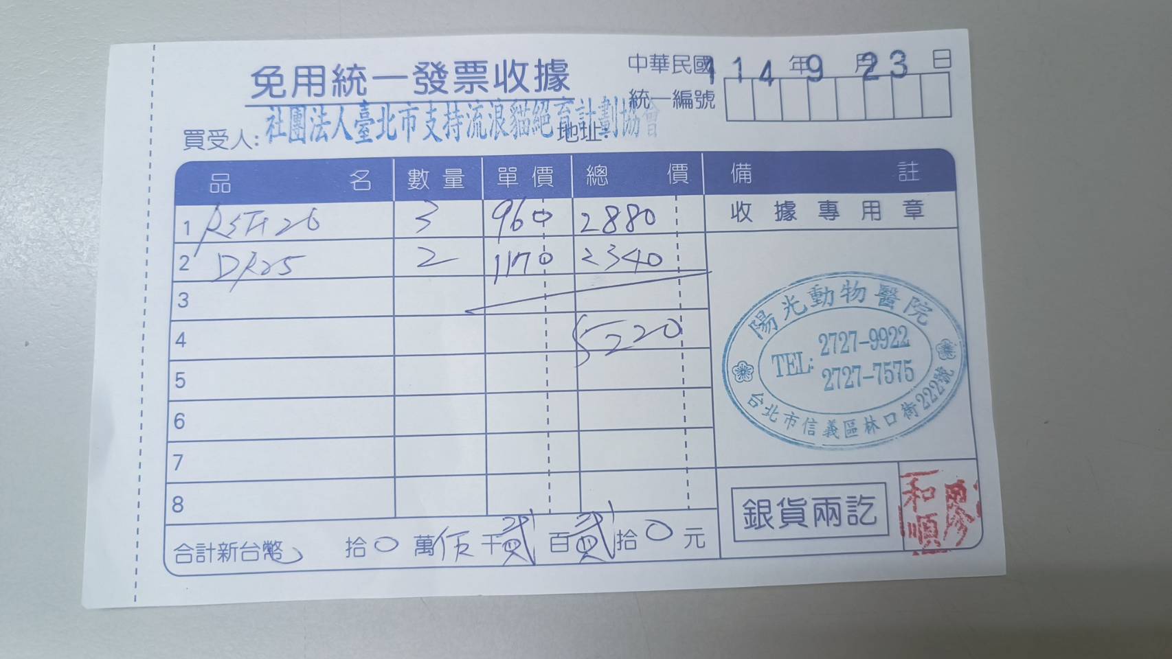 收據可抵稅請將地址mail至cashier@tnrtw.org0912940006763