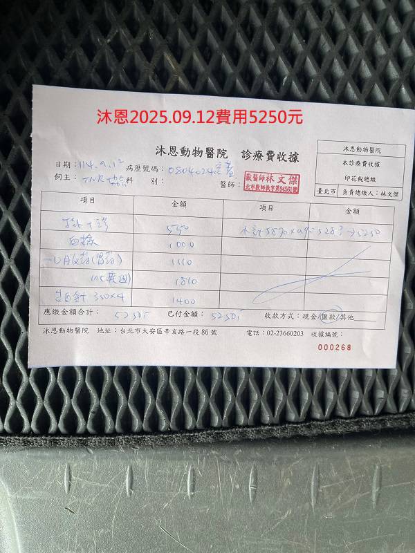 2025年9月12日因背上黴菌感染範圍擴大回診只用清水刷洗,須保持乾燥。腎指數一樣超出範圍,食物盡量以腎處方為主。本筆醫助是2025年9月12日間於沐恩醫院的費用,包含血檢及用藥。