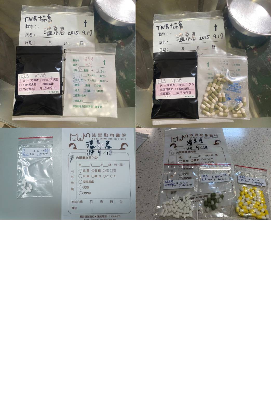 近日因溫泉君精神及食慾不振回診檢查,所幸指數皆正常,但針對流鼻涕加開抗生素及組織胺,若狀況好轉藥吃一週即可停止。