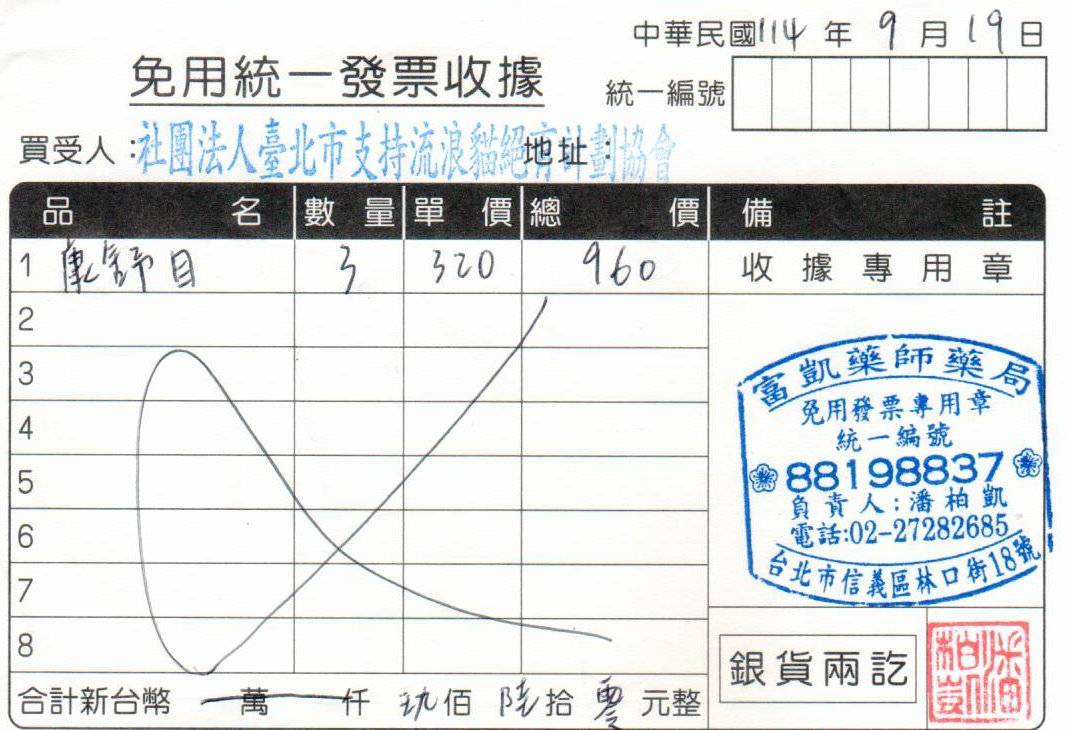 戶名:社團法人臺北市支持流浪貓絕育計劃協會