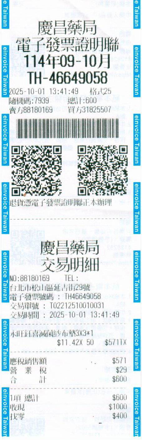 2025/10/1-TH-46649058-慶昌藥局-紗布50包 $600