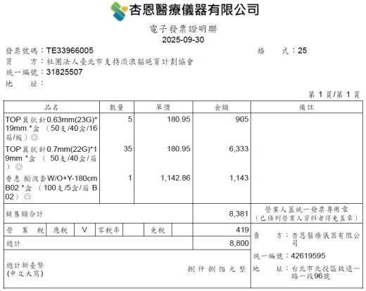 收據可抵稅請將地址mail至cashier@tnrtw.org0912940006763