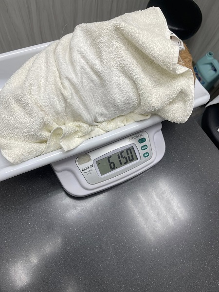 2025年2月間的回診肝指數終於有下降,但是在懷疑肝臟有長東西的情況下,肝指數應該是要比較高的,因體重有維持,就先觀察看看,另外因食慾不很穩定,開始吃食慾促進劑,原本可以四個月後再回診,但2025年3月24日糕糕突然出現呼吸急促、吐舌頭,臨時至沐恩醫院回診,因須仔細檢查、擔心造成糕糕過於緊迫,因此在鎮定後才進行檢查,血檢無特別異常,X光檢查及超音波檢查結果,發現有胸水及肺水腫,醫師將右胸水抽出大約70ml,糕糕在氧氣室休息,因呼吸還是用力及上膀胱發現有泡尿沒尿出來,所以當天先住院觀察治療、持續吸氧及給予利尿劑還有心臟用藥,醫師表示糕糕的心臟循環較差,肺葉後面有看到2顆不確定是不是腫瘤的東西,但也可能只是發炎,在調整用藥後,糕糕情況有比較穩定、2025年3月27日辦理出院。