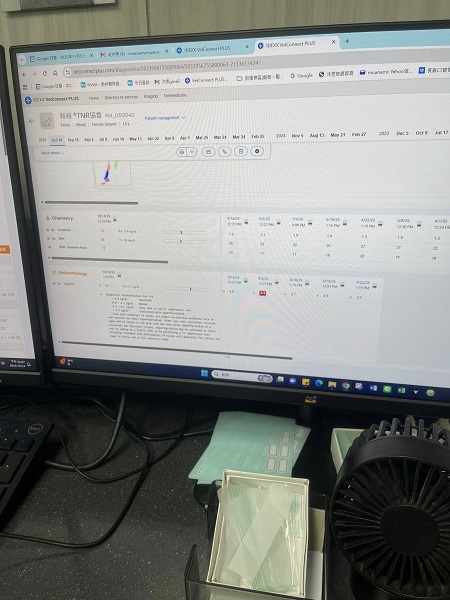 2025年4月1日回診,肝腎指數都正常,紅血球低、白血球高,超音波檢查胸腹部都有一點水,因此呼吸還是稍微比較用力,醫師先幫糕糕打利尿劑希望可以排出水,另外建議再至心臟科看看目前心臟狀況,以作為日後的用藥的評估,因此於2025年4月1日至心臟專科專心醫院檢查,經過心臟超音波及心電圖、聽診、測量血壓等檢查後,檢查結果有明顯心雜音、心律不整程度提高、左心房擴大並有胸水,心臟科醫師有提出其他用藥的建議,並建議糕糕要做甲狀腺指數檢查,因若有甲狀腺問題是會影響心臟及肝臟,完成心臟科檢查後將報告轉達沐恩醫院,2025年4月至2025年6月於沐恩的回診,紅白血球及肝腎指數、甲狀腺都正常、超音波檢查也逐漸沒有胸水了,心臟跳動雖然偶有漏一拍但也比之前較有力,體重也有維持。