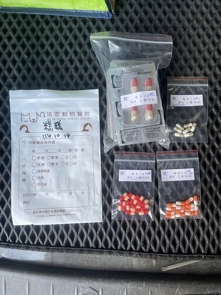 糕糕自2021年10月回診開始出現肝指數升高,超音波檢查結果肝臟本身沒有問題、胰臟有小小的黑洞影像,開始吃肝藥及酵素,後來又發現腸道淋巴結出現腫大情形,2022年4月間超音波檢查胰臟發炎及胰臟旁邊淋巴結腫大,細針採樣抹片查看結果是有活躍的淋巴細胞,但還沒有大到癌化細胞的程度,2022年8月胰臟與12指腸間的團塊影像變大,對照以往超音波紀錄,此團塊也曾出現忽大忽小的情況,但在體重沒有變輕的情況下,或許團塊只是淋巴結腫或是良性瘤,因為團塊與肝指數的變化情況類似,懷疑可能是食物引起,開始打皮下輸液,一個月後回診的肝指數有下降了,因此研判先前肝指數過高可能是環境因素暫時影響,而腹部腫塊屬發炎性,跟肝指過高應沒關係,之後持續的回診,肝指數仍是高於正常值,腸繫膜淋巴結腫也仍一直存在,雖沒有出現像惡性腫瘤的變化,但醫師仍不能排除淋巴癌的可能性,要確定必須開腹探查,但協會考量到糕糕個性極為緊張,每次看診都要蓋住大毛巾才能進行,所以開腹探查手術過程造成的傷口或是住院,會讓糕糕疼痛及造成很大緊迫,所以只要糕糕精神食慾都穩定,就不手術、再觀察看看,維持吃藥控制的方式及定期回診做檢查。