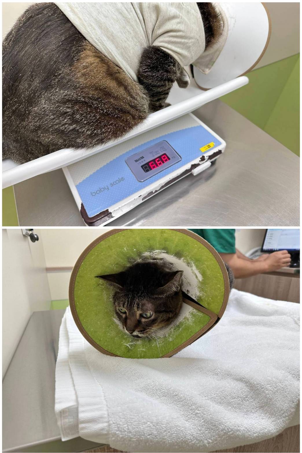 2025年3月28日因妙咪連續幾日拉肚子,雖食慾精神仍正常,但後來還有嘔吐,經詢問長青醫師後先至沐恩醫院取回制酸止吐針劑幫妙咪施打並同時打皮下輸液,打三天針劑及吃止瀉藥後,妙咪沒有再嘔吐、也沒有再拉肚子了。