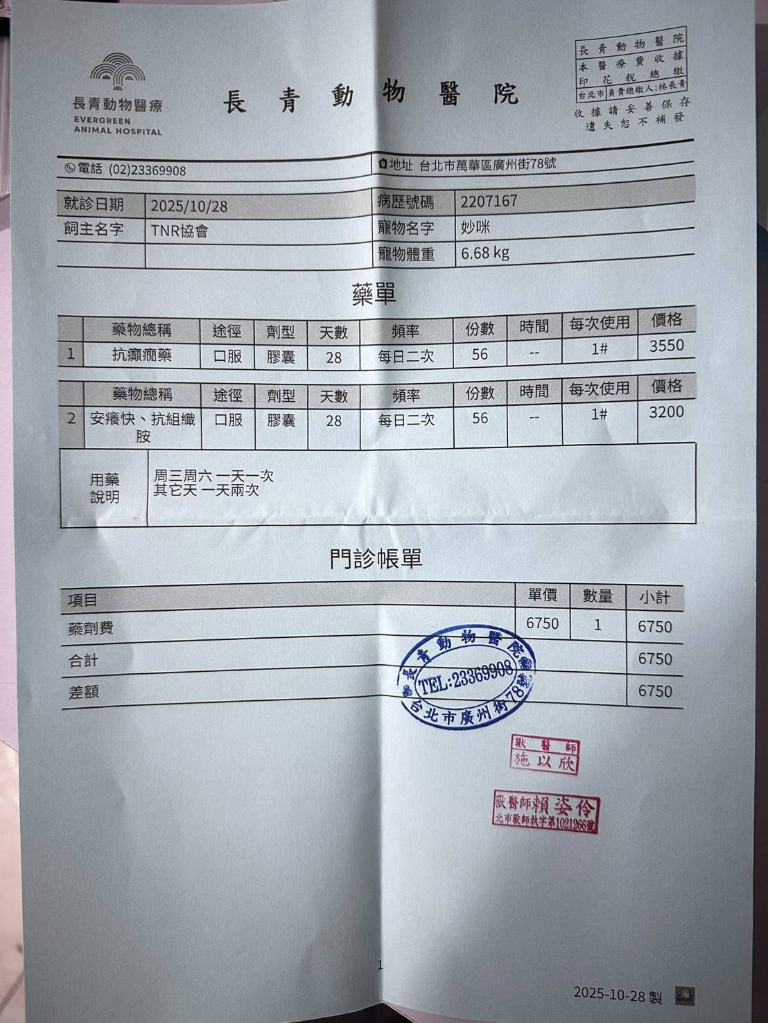 2025/10/28 妙咪 長青拿藥