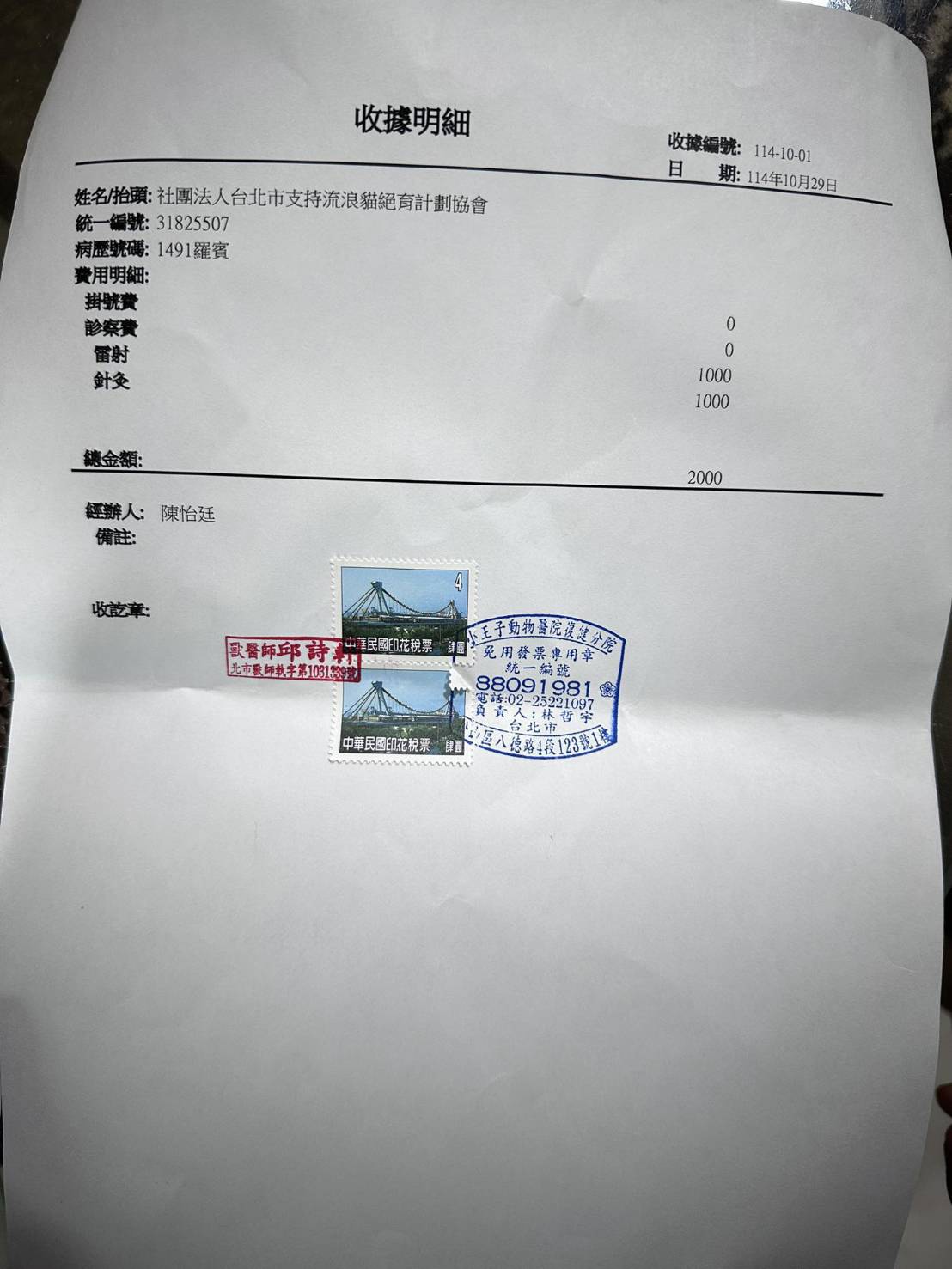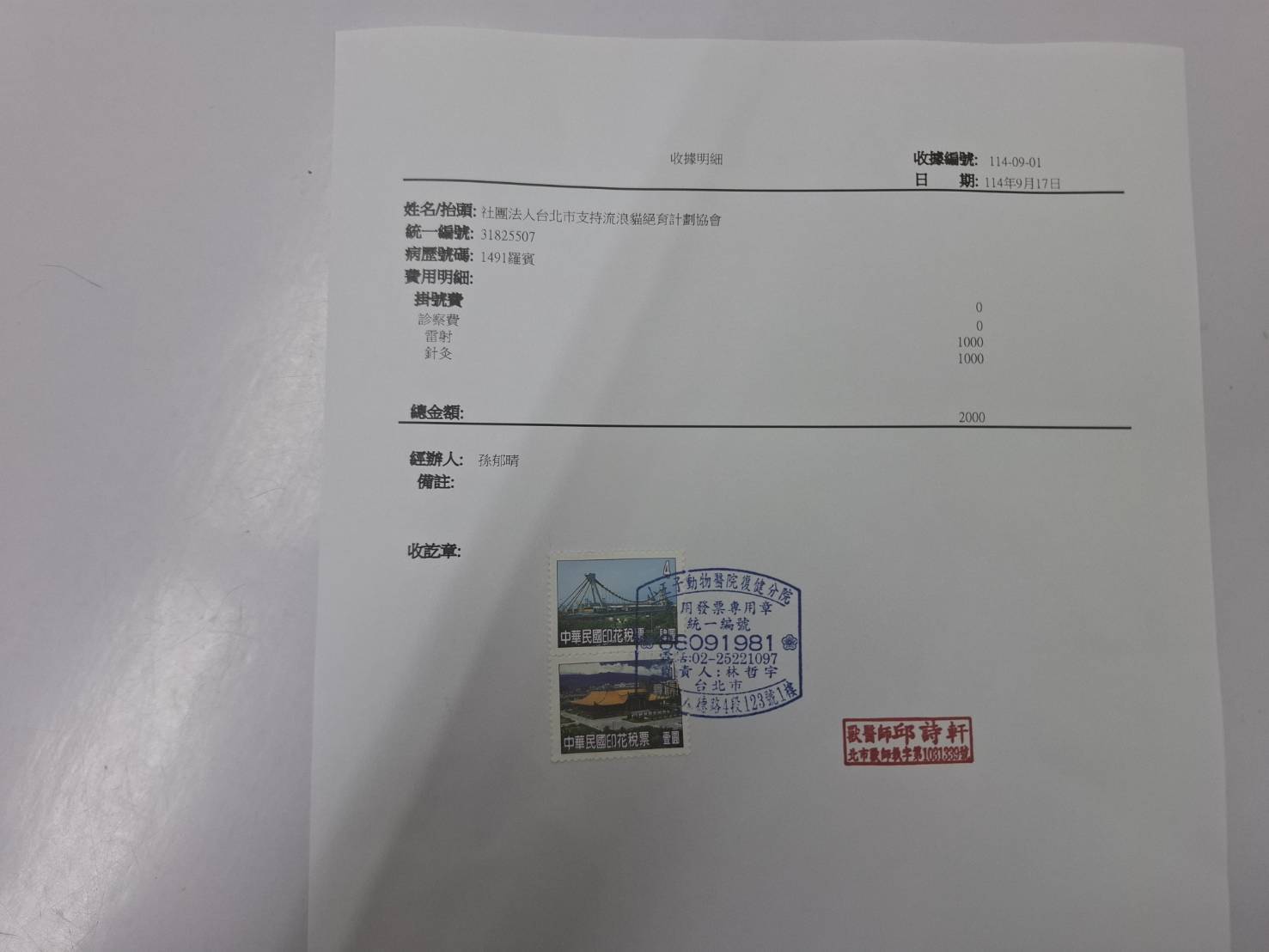 收據可抵稅請將地址mail至cashier@tnrtw.org0912940006763