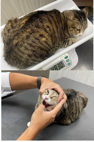 2025年2月3日回診,發現體重又開始逐漸減輕,因平時並無看到食慾變差且口炎看起來控制得很不錯、口腔並沒有變紅,就先提高食慾促進劑劑量,還好腎指數維持在標準範圍,其他指數也良好,皮膚之前舔禿的毛也有長回來,整體狀況還算穩定。