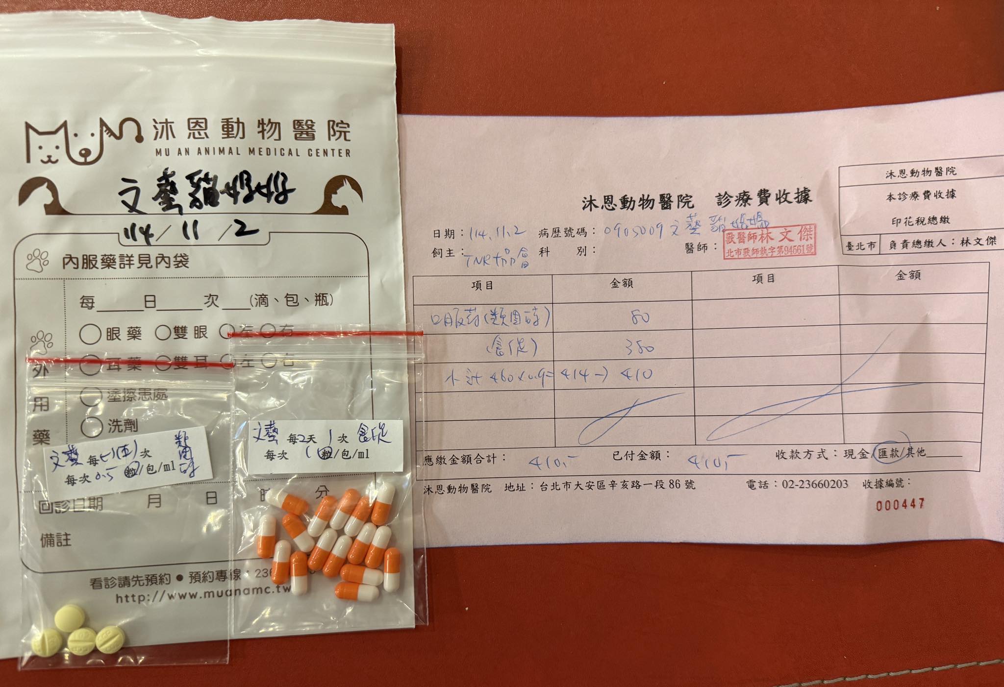 但畢竟年紀越來越大,腎臟開始出現問題及之前辛苦流浪的日子也讓身體受到影響,所以她的醫療還須持續很長時間,本筆醫助是自2025年10月2日於沐恩醫院的費用,包含回診檢查、血檢及用藥。