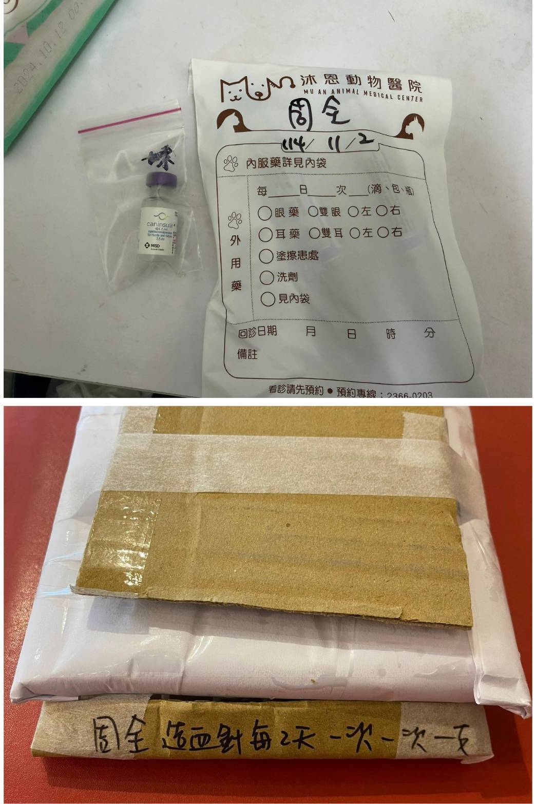 2025年6月13日周全早上反常沒有將食物吃完、嘔吐、精神不好,回報沐恩後臨時回診。血檢胰臟炎是陰性,但超音波影像胰臟炎是偏白,醫師懷疑還是有胰臟炎,少量腹水也是因身體發炎引起,也擔心即將有全身性的細菌感染,今天用藥會做調整。