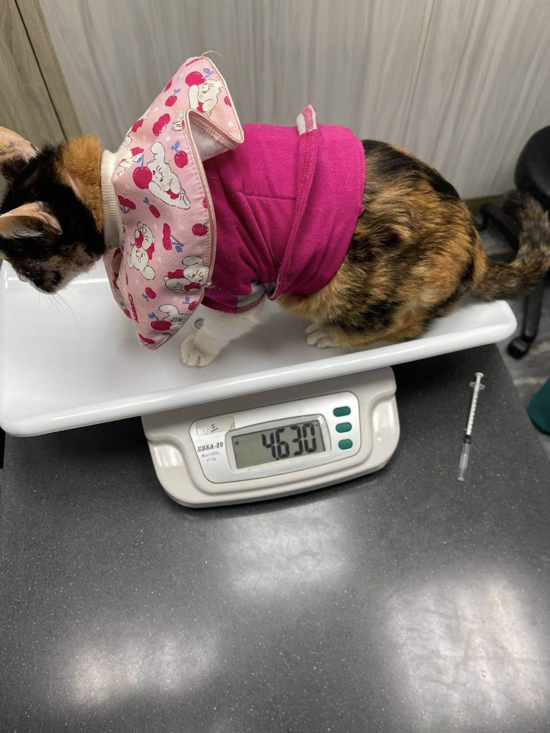 體重:4.630kg(含頭套衣服)(9/24是4.765kg)