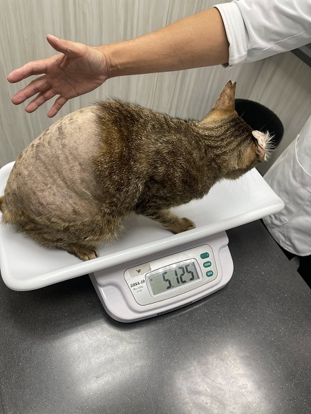 2023年11月開始至2024年11月,此期間阿灰皮膚狀況一直不穩定,也幾度又發作舌炎,舌頭上有潰紅的小患處,醫師將用藥劑量提高,直到2025年1月回診時才開始逐漸穩定,皮膚已有明顯改善,可以停吃黴菌藥只是皮屑仍稍多,須每天梳毛,舌炎的潰紅也不見了,雖然肝指數因吃黴菌藥有升高,但只要停吃藥就可以恢復正常。