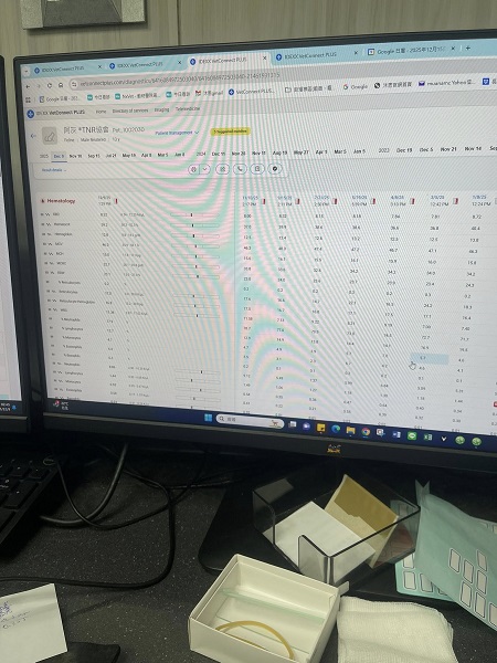 2025年4月8日,皮膚有改善,整體血檢都還良好,肝指數正常、沒有因為吃黴菌藥受到影響,口腔檢查結果,雖後方兩側仍有點紅但舌頭表面正常沒有出現潰紅,整體檢查是還穩定,但體重減輕較多,需要留意進食並注意若體重再減輕就要提前回診。