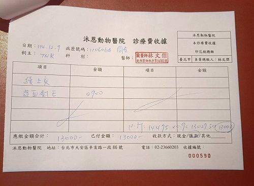 可憐的周全在2024年底下巴部位又復發肥大細胞瘤,2025年1月14日於沐恩進行切除手術,手術切除的檢體送病理報告的結果也確定是肥大細胞瘤,報告表示手術範圍邊界沒有再發現肥大細胞,表示有切除乾淨。