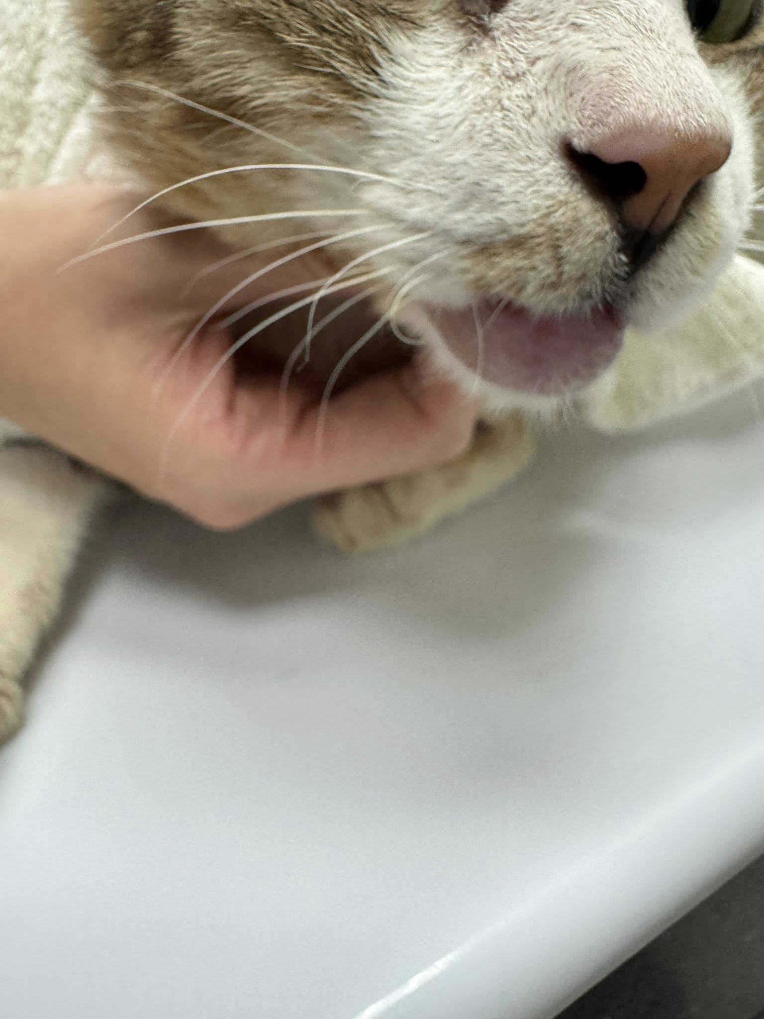 2025年10月16日於沐恩看診,因病毒感染長期無法抑制,所以耳朵及嘴巴總是會持續紅腫,需加強清潔保持乾淨。紅血球與球蛋白皆超出標準範圍,同時也須注意精神食慾狀況,若變差則需要儘速與醫院連繫回診。