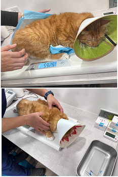 大福幾年來持續於小王子醫院的針灸療程,會同時進行觸診檢查腸道,看看膀胱有沒有積尿、腸道是否有積便,因每天吃幫助排便的用藥,經常是泥便居多,但以大福曾因痾便困難、需要鎮定浣腸的情況下,泥便反而是較好的,且同時大福的體重食慾精神都維持穩定,所以就不需擔心時常泥便的問題,另外持續針灸及復健的醫療照護,讓大福的後肢肌肉量維持足夠、沒有萎縮,有時還能像正常貓咪般的站立,隨著大福的狀況越來越穩定,針灸療程從每週一次,已經可以拉長回診間隔了,近幾次回診,體重一度有減輕一點,可能是因為泥便量較多,但食慾看起來是沒有減少的,且醫師認為還是有維持在標準內、太重也不好。