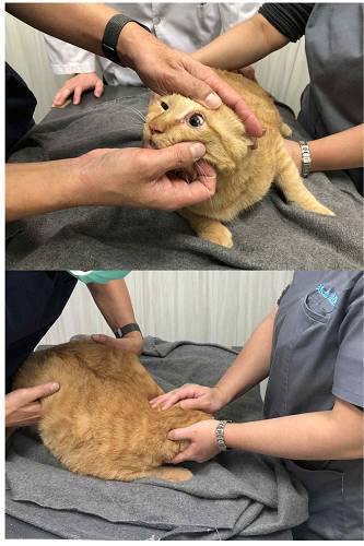 在安養之家受到細心呵護,讓金玉很快就長成帥氣的大貓,每天開心的玩耍嬉鬧,但2022年1月時出現精神不好、沒有活力至長青醫院檢查,有發燒、血檢營養狀況下降及A/G比也處於灰色地帶及超音波檢查發現淋巴結腫大等等症狀,雖然X光沒有發現胸水,但醫師認為腹膜炎的機會很大,淋巴結腫大未排除腫瘤的可能性,醫師認為以現階段送驗病毒並無太大意義,先給予症狀治療如打皮下輸液、開食促及B12,並依照協會照護腹膜炎貓咪經驗,開始給予腹膜炎保健品。