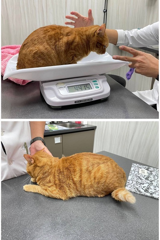 貓瘟病毒會嚴重傷害腸道黏膜,蜜柑的消化吸收功能都比常貓來得弱,體重增加緩慢、經常出現拉肚子情況,持續回診、吃抗生素及腸道保健品,在2022年4月間發情接受絕育手術,而腹瀉情況在持續用藥數月後有明顯改善,只是蜜柑的健康狀況極不穩定,2022年9月因發燒、食慾精神變差至沐恩醫院檢查結果,血檢紅血球下降、肝指數及白血球指數升高、X光的腎臟影像異常、超音波發現腹水、血檢A/G比指數很低,抽血後送實驗室的冠狀病毒PCR結果是陽性,加上血檢及臨床症狀,醫師認為腹膜炎的機率相當高,除了住院打靜脈,協會也立刻購買昂貴的腹膜炎保養品送往醫院給蜜柑服用,雖住院治療用藥後有好轉、可出院,但自此開始至2023年12月間,健康狀況還是反覆不定、幾度因為發燒、淋巴指數高、精神食慾差幾度住院治療,也持續吃昂貴的腹膜炎保健品。經過一年多的持續回診治療及用藥、吃完腹膜炎保健品療程,直到2024年1月間開始的定期回診,蜜柑的各項檢查結果才開始逐漸穩定,除了可逐漸減少用藥,只需吃肝臟保健品及食慾促進劑,也可延長回診時間。