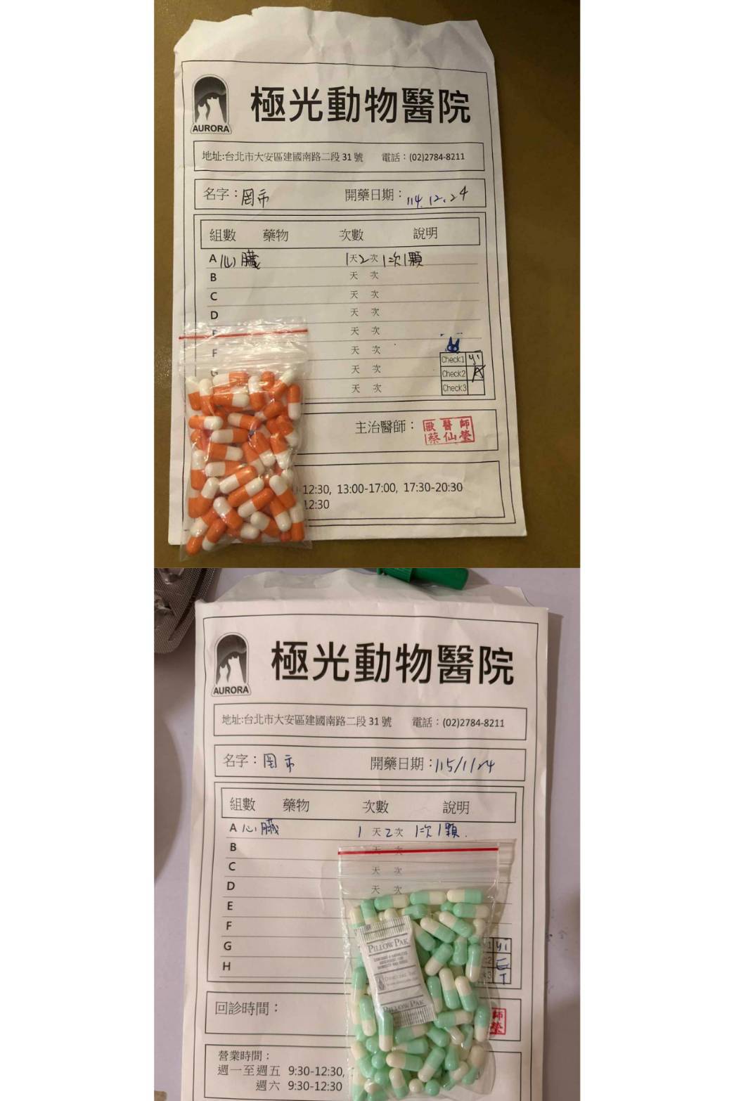 心臟藥:每天早晚各一顆。