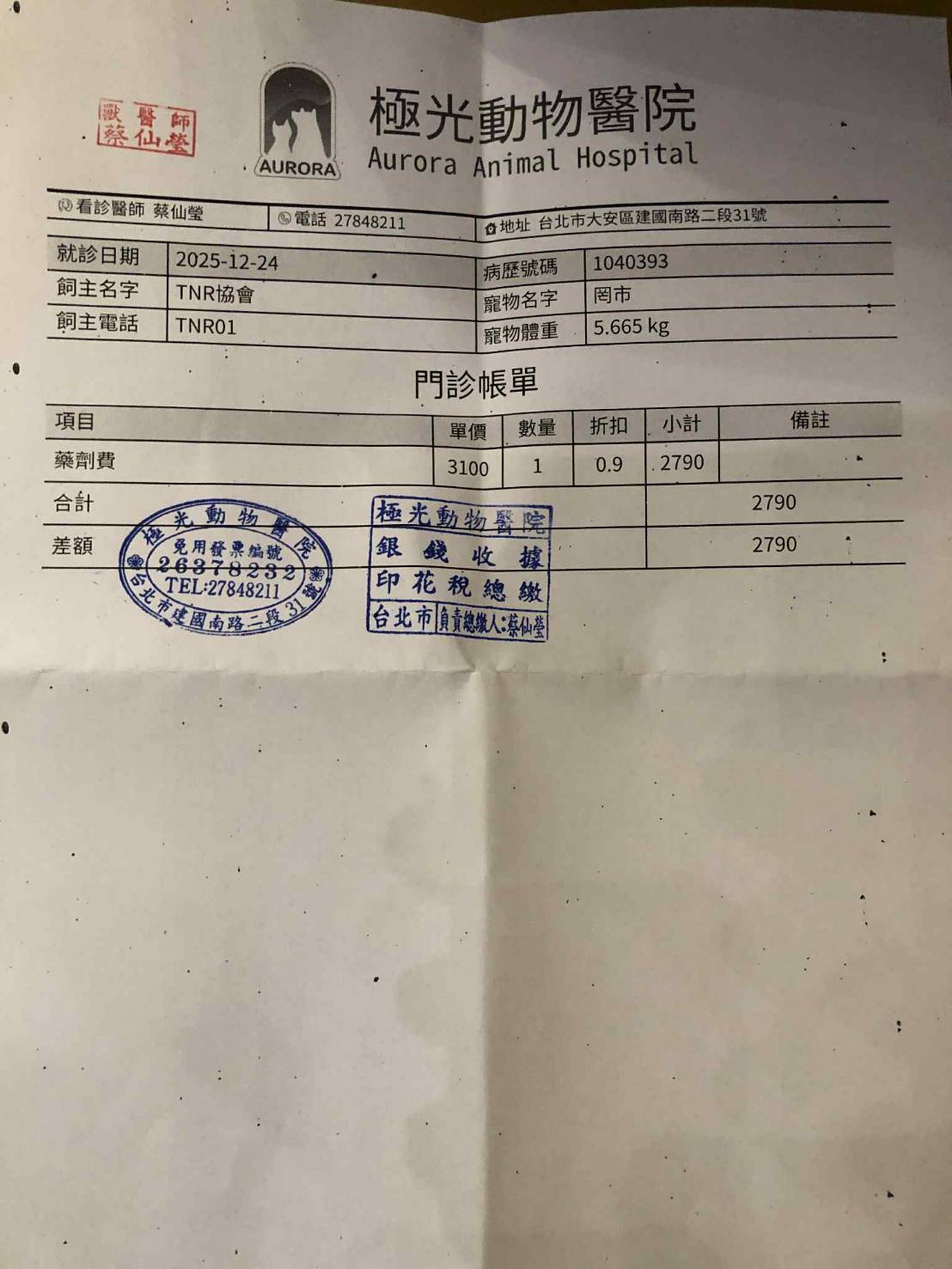 收據可抵稅請將地址mail至cashier@tnrtw.org0912940006763