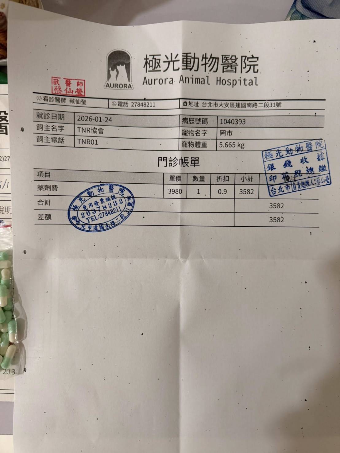 罔市雖然曾經經歷心臟的大手術,但幸好是有協會給予最好最用心的醫療與照護,讓罔市長得圓潤可愛,她的個性也很親人撒嬌,很喜歡翻肚子腳開開的討摸摸,罔市的心臟用藥是終身需求,本筆醫助是2025年12月26日至226年1月24日間於極光動物醫院取心臟藥的費用。