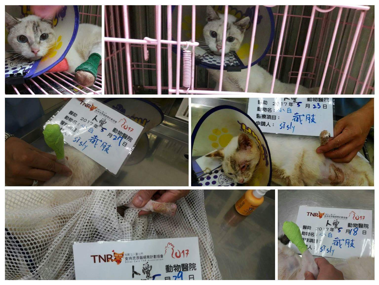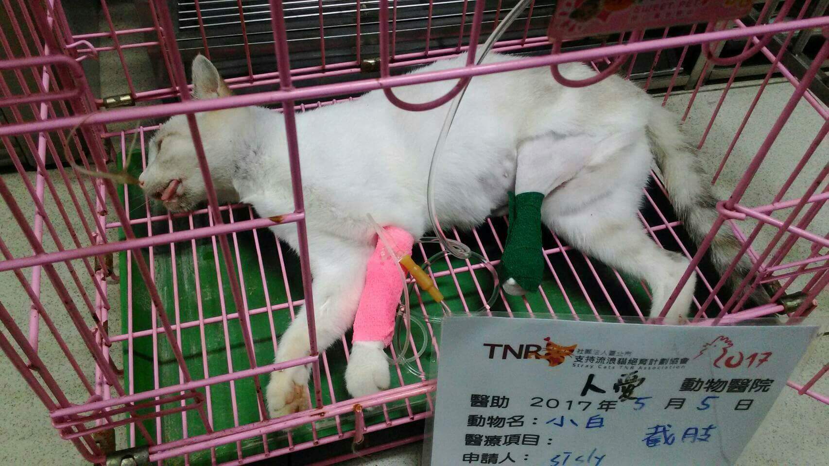 骨盆有碎裂,但也無法做什麼處理,慢慢修復,之前遇過疑似癱但後來也是慢慢會修復並會站,相信小白也可以的,會大小便真的就是一件美好的事了^^ 截肢後,貓咪身體調養的越好,很變得更兇,這應該是好事,代表她有力氣兇人,有體力^^ 傷口復原比較需要時間和細心注意傷口復原的狀況,感謝醫院在貓咪治療出院後,擔心傷口又安置在醫院觀察了一週,再次確認才請志工帶走,目前安置等待親人訓練後再幫她找個家,感謝大家幫助小白.