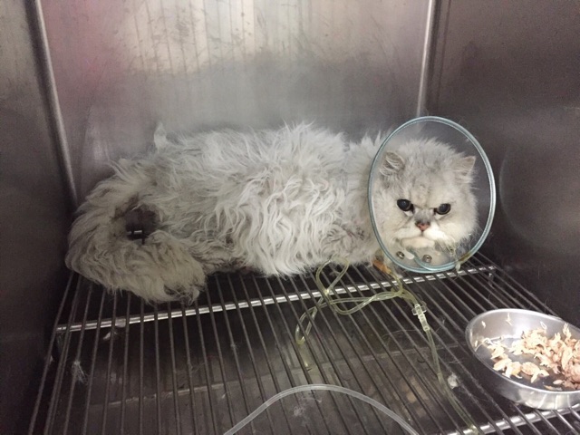 5/8那一天救援到他時,他不知道流浪了多久,非常的瘦弱,全身毛都打結,這樣的孩子在外面幾乎沒什麼求生技巧,這些日子不知道他都遭遇了什麼…。