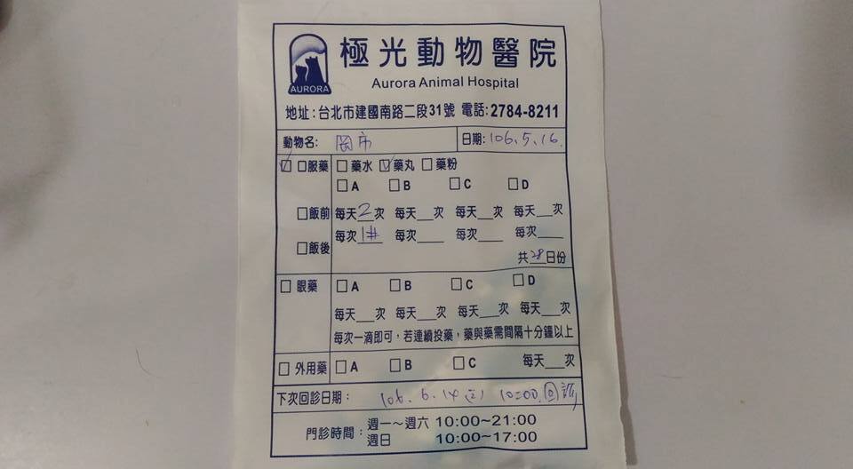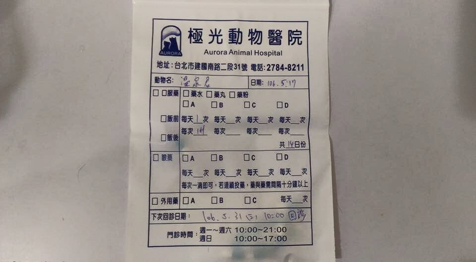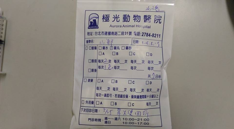 但仍軟便不止,因此只得繼續投藥並由食物的改變推斷是否也期牠軟便原因