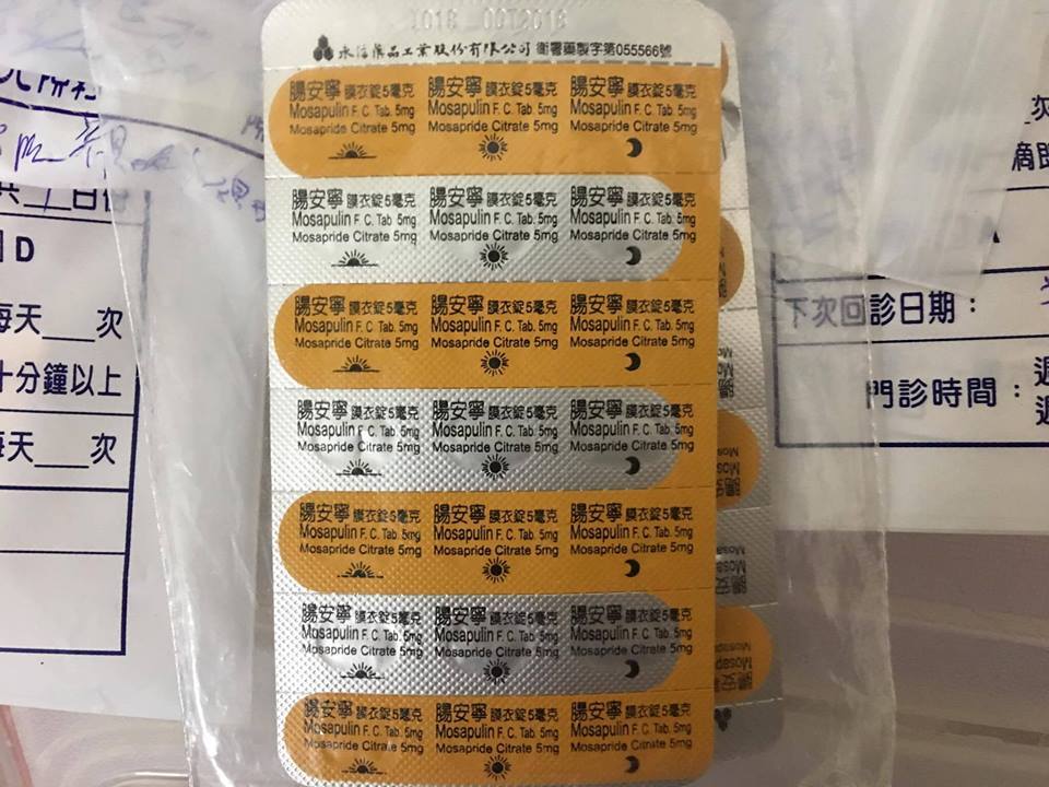 2. 腸胃蠕動藥、早晚各一次1/2顆