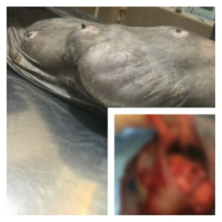 主題: 胸部腫大的黑媽 申請者姓名: 簡蕙瑱 花色: 申請日期: 2017-07-02 13:19:08 申請者部落格: 申請者臉書網址: https://m.facebook.com/home.php?_rdr 所在縣市/合作醫院: 花蓮縣/美崙動物醫院 治療費用: 9400元 需求人數: 22人 已結案 (2024-06-01 13:26:46) 報名人員: Noel6731(已付款)、show x2(已付款)、Carambar Liu(已付款)、林小豬(已付款)、Yvonne x2(已付款)、Yating Yeh、Rachel Hsieh x2(已付款)、SY Liou(已付款)、Emily Yen x2(已付款)、Shan Chou x9(已付款)、JasmineC(已付款)、 候補人員: 動物病情說明: 這區貓咪一直都持續在進行TNR,剛好同事住在附近,有聽同事提過似乎看過一隻貓肚子腫大,懷疑是否長腫瘤,只是一直沒有遇過,因為那區的貓咪是會進去附近的市場覓食,而且會有路過的民眾放置廚餘,但是那區的居民對貓咪極不友善,也遇到民眾刁難,所以餵食的時間總是在夜深人靜時,貓咪也許是因為被驅趕過,所以貓咪的警覺性比其他餵食區還強烈,在六月初時,連續兩個星期在這區進行TNR,終於誘捕到這隻貓咪,緊急送醫後,醫生先檢查,照超X光片,才發現原來腫大是因為疝氣造成的,而且已經有腸子掉落其中,怕是放回後會有更多的器官陷落,所以評估後,醫師建議開刀手術並留院觀察傷口復原的狀況。