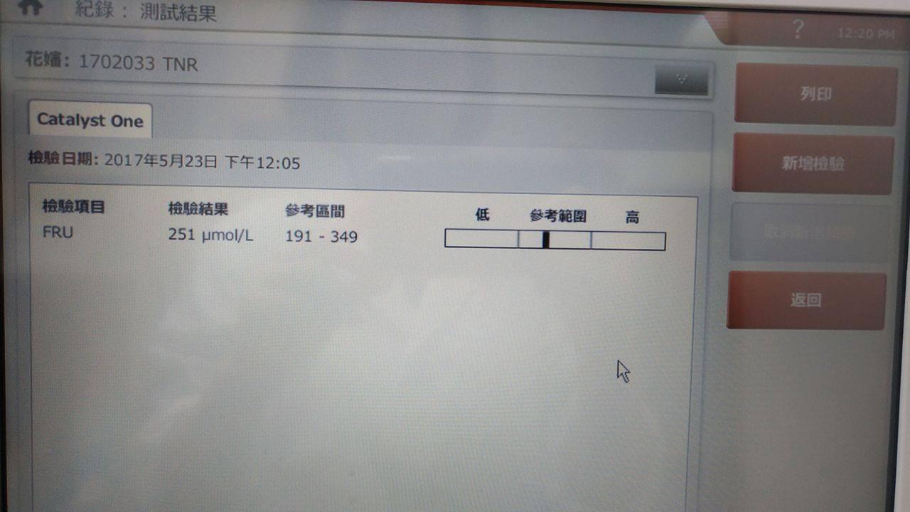 花嬸今日測血糖158 還好,另外有測一個果糖胺(註1),數值251(正常值為300~400),小於190為危險值。251屬正常值偏低一點點。