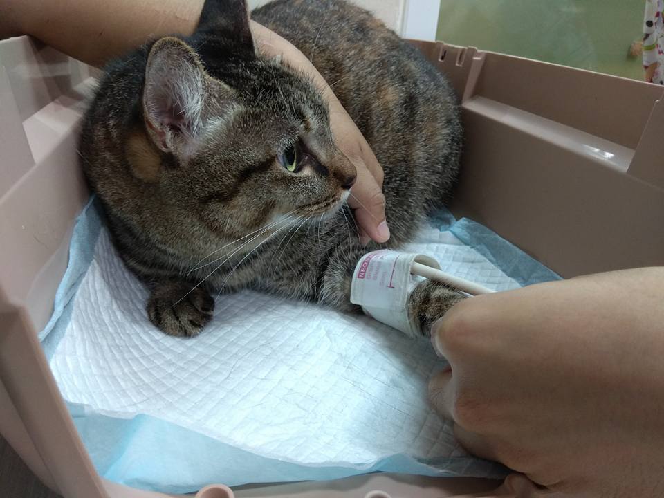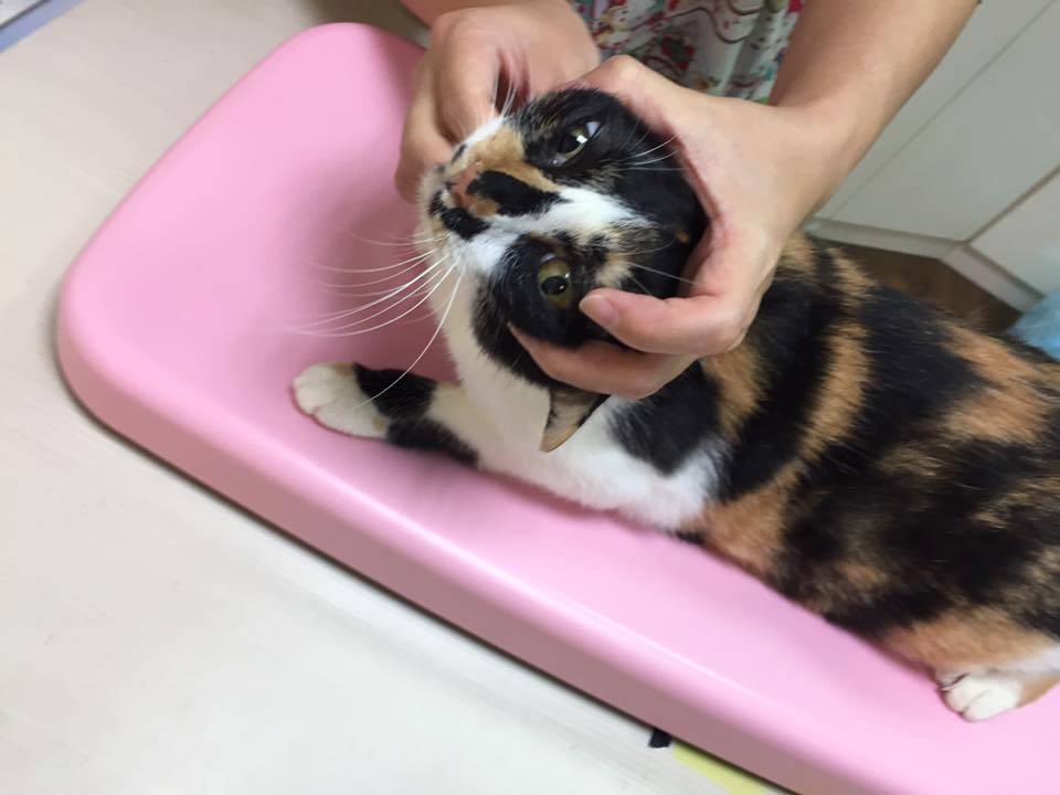 花妹則是辦公室附近突然出現的街貓,由眼尖的志工發現脖子上纏有橡皮筋,所幸可能剛纏上不久,對貓咪還未造成傷害,花妹十分的親人撒嬌,之後便入住了安養之家等待有緣人