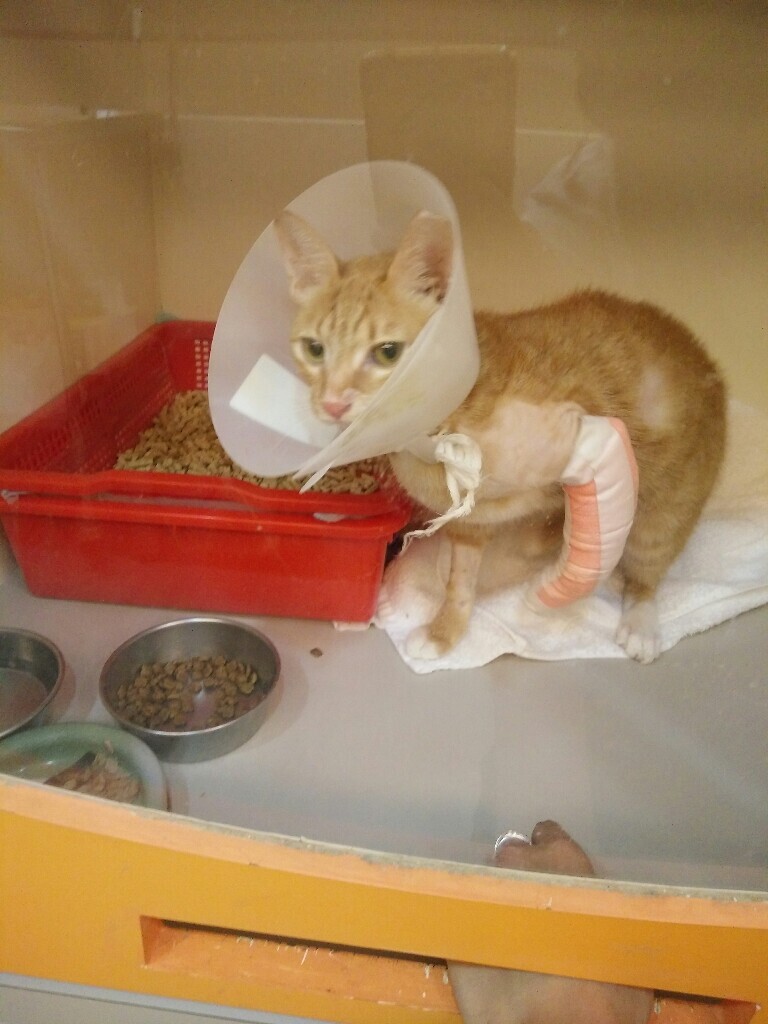 主題: 骨折脫臼的弟弟 申請者姓名: 潘小潘 花色: 申請日期: 2017-07-01 19:47:22 申請者部落格: 申請者臉書網址: https://www.facebook.com/profile.php?id=100000369575090 所在縣市/合作醫院: 台北市/澄諾動物醫院 治療費用: 8640元 需求人數: 19人 已結案 (2024-06-01 13:26:09) 報名人員: 林雅雯(已付款)、Sandy Shen(已付款)、yishin52(已付款)、普普 x8(已付款)、丁丁 x2(已付款)、Tetsu x6(已付款)、 候補人員: 動物病情說明: 弟弟是我從小到大跟媽媽一起每天固定餵養的孩子,不常接觸陌生人,生活在無人走動的暗巷,隨著年紀越大好奇心越強,常常就跟著大孩子們走出巷子遊玩,缺少警戒心的他失蹤二天之後再出現時發現他走路左前腳跛腳無法著地以及臉部下顎腫脹,緊急將弟弟送醫,謝謝TNR協會協助就醫事宜,經澄諾楊醫生檢查後為貓前肢骨頭斷裂,腕部脫臼,怕骨折處更歪,醫生已先固定起來,安排日後至維康動物醫院做內固定手術…不能確定到底為何受傷,只知道當找到孩子時,孩子求救的叫聲是如此的讓人心痛… 動物近況說明: 弟弟已前往維康動物醫院做內固定手術,術後恢復良好,但弟弟的醫藥費還要拜託各位大德們幫忙了,感恩大家…