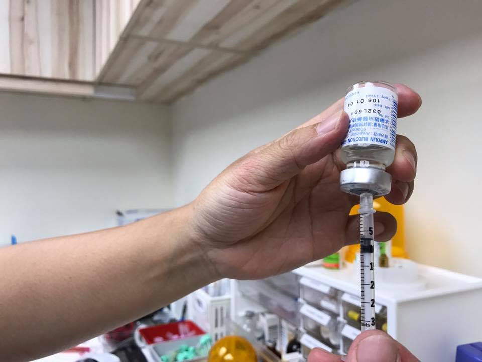 驅蟲藥吃五天,一天一次,請晚班照護員餵藥,每貓每次0.3 c.c(三隻貓剛好一管)。