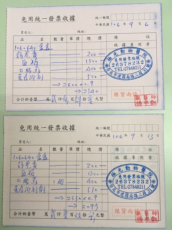 動物近況說明: 下次回診日期為9/20