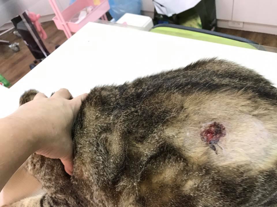 23日晚苗栗工作人員發現Jasmine背後流出不少膿血,