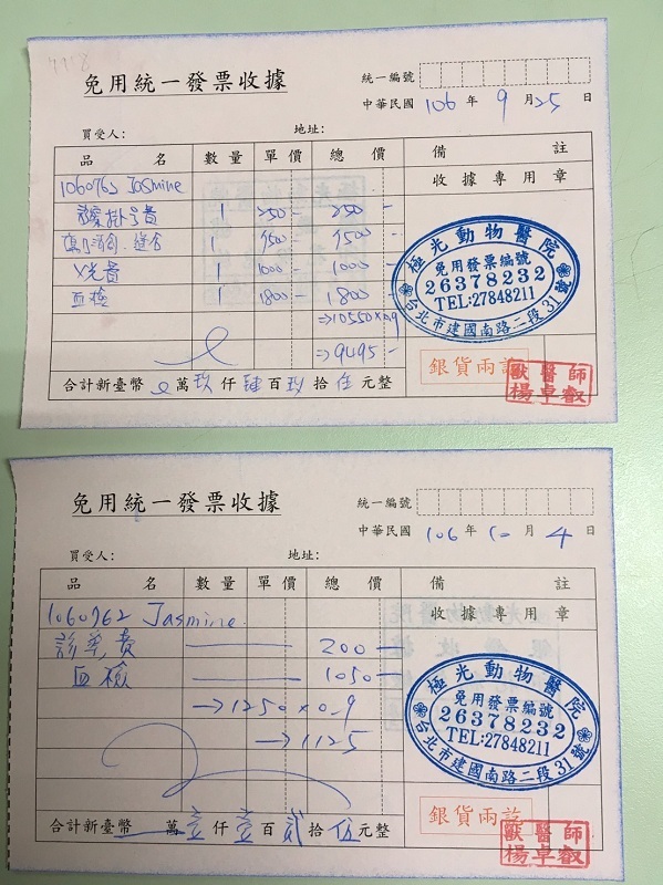 動物近況說明: Jasmine的傷口縫合處正持續好轉
