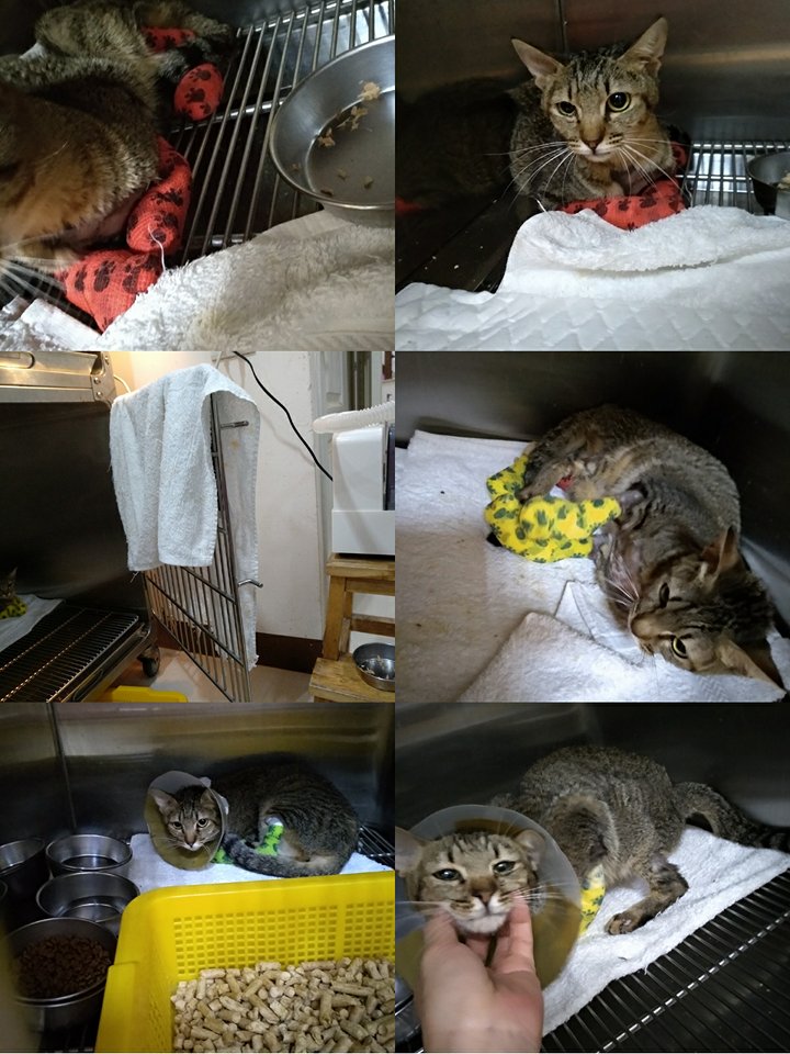 去醫院看貓咪~就喵喵叫的回應~~也很撒嬌~~真的很心疼孩子瘦這麼重的傷~~還願意相信人討摸摸~~