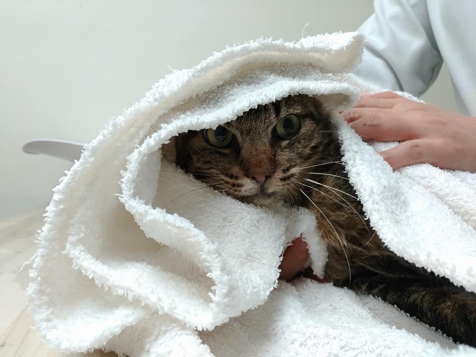 身體有多處抓傷,疑似被其他貓咪欺負,需觀察食慾是否正常,若又問題需再回報